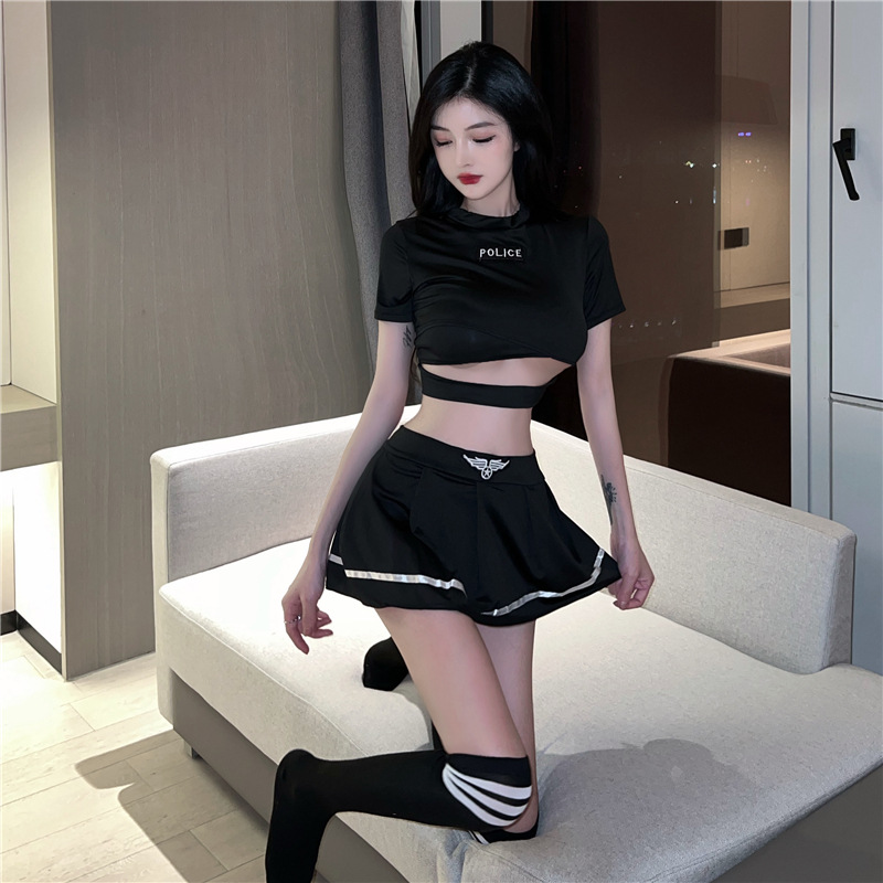 18YX0055 2023 Eropa dan Amerika lintas batas perdagangan luar negeri siswa murni pakaian seksi kaus pendek seragam miniskirt dua potong