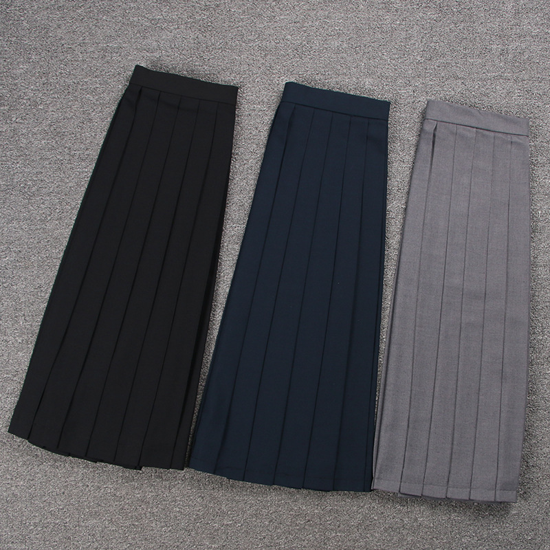 Rok lipit warna polos kuliah Ortodoks Jepang baru rok seragam JK rok panjang saku pinggang tinggi pelajar rok buruk