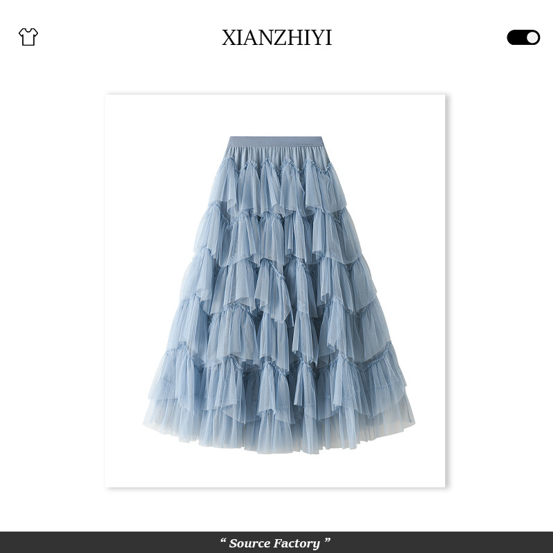 Rok Panjang Kasa Keliman Besar Bertingkat Besar Gaya Jepang Model Baru Musim Semi 2025 Rok Kasa Terlihat Langsing Pinggang Tinggi Rok Tutu Kue Peri
