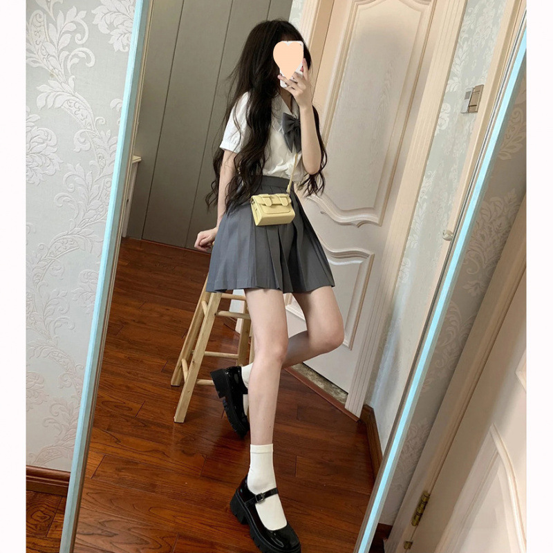 Setelan Rok Lipit Kemeja Putih untuk Pertandingan Olahraga Puisi Wisuda Musim Wisuda Gaya Mahasiswa Sekolah Menengah Pertama