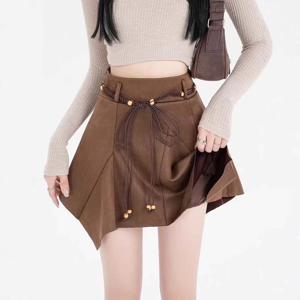 Rok suede retro Z5T model tidak beraturan, musim gugur/dingin 2025, rok pendek high-waisted baru yang melangsingkan, serbaguna untuk wanita modis