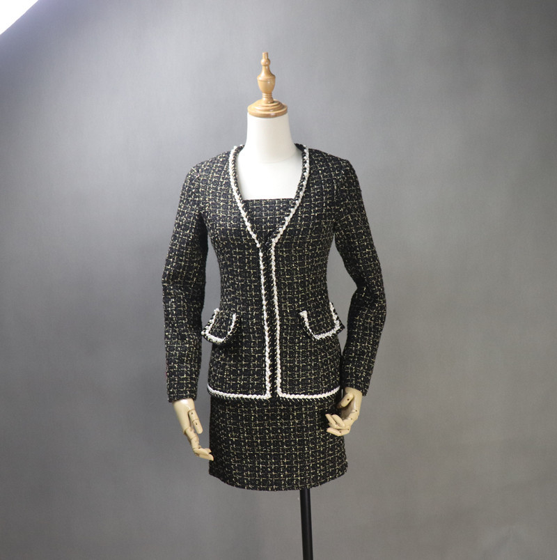 Setelan pakaian wanita model Channel, mantel pakaian wanita 2 potong, rok pelangsing ramping, setelan rok Seleb, musim gugur dan musim dingin