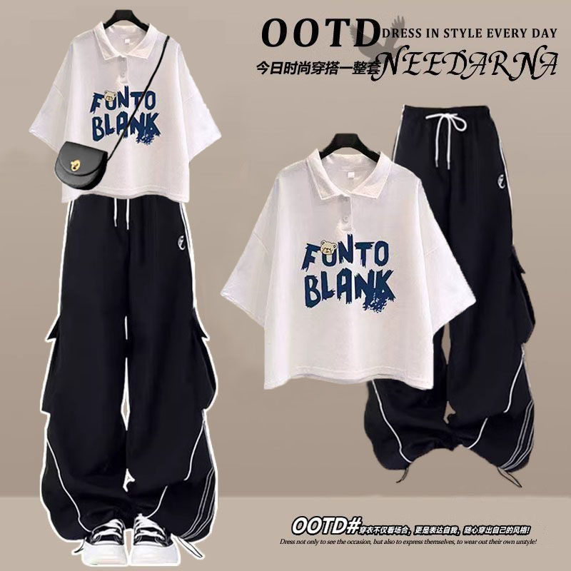 Setelan Pakaian Anak Perempuan Musim Panas T-shirt Lengan Pendek Elegan Kecil Longgar Gaya Korea Celana Kerja Tampan Pinggang Tinggi Setelan Dua Potong