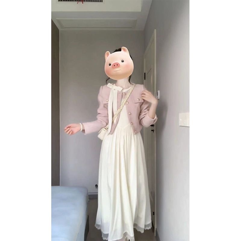Rok Setel Model Baru Musim Gugur Musim Dingin Gaun Dalaman Gaya Korea Gaya Kampus Lembut Jaket Kardigan Murid Wanita Manis Berkelas
