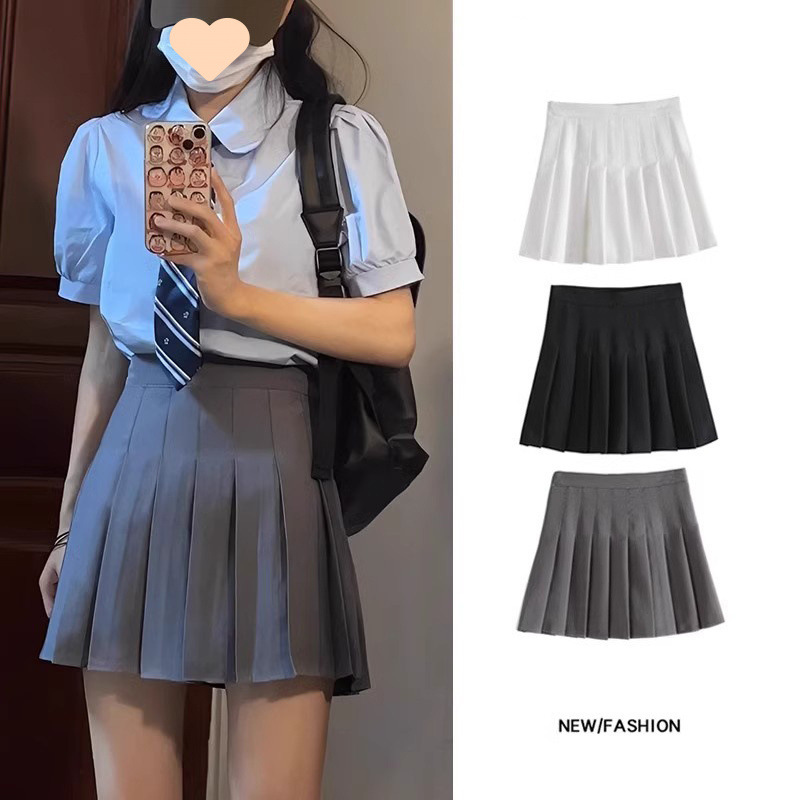 Rok Setengah Badan Warna Putih Rok Lipit Wanita Model Baru 2025 Rok Payung Musim Gugur Musim Dingin Terlihat Langsing Pinggang Tinggi Rok Siswa Peri