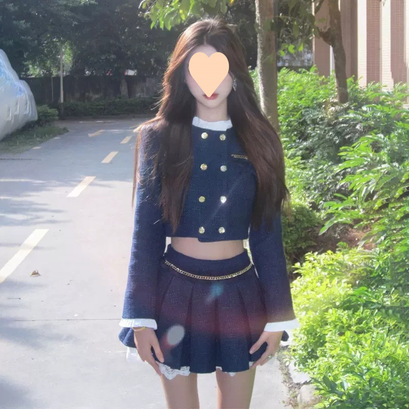 Set Seragam Wanita Gaya Chanel Kecil Musim Semi dan Musim Gugur 2025 Model Baru Model Prancis Ringan Mewah Model Premium Rok Lipit Dua Potong