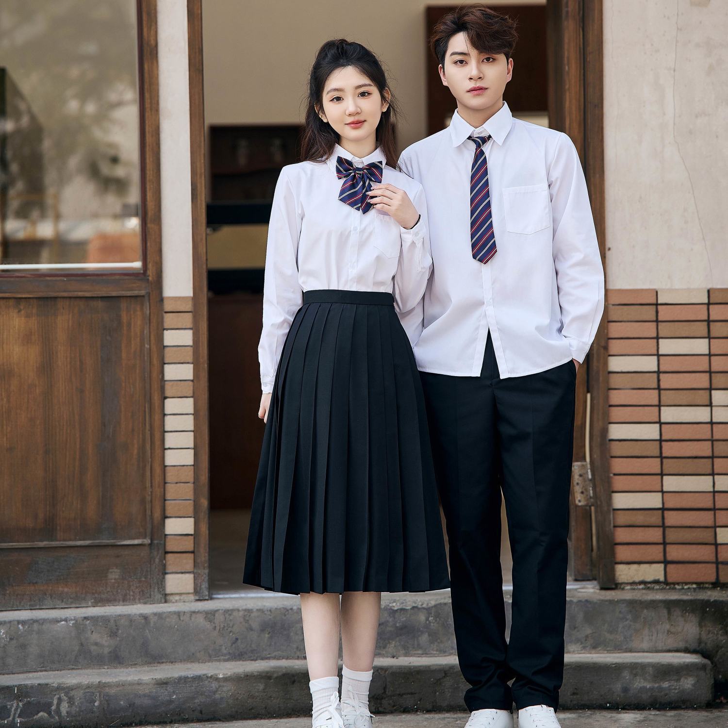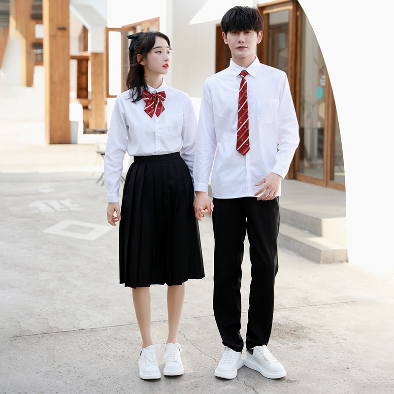 Grosir kemeja putih setelan celana hitam seragam sekolah menengah pertama seragam kelas kinerja pria dan wanita musim semi dan musim gugur paduan suara