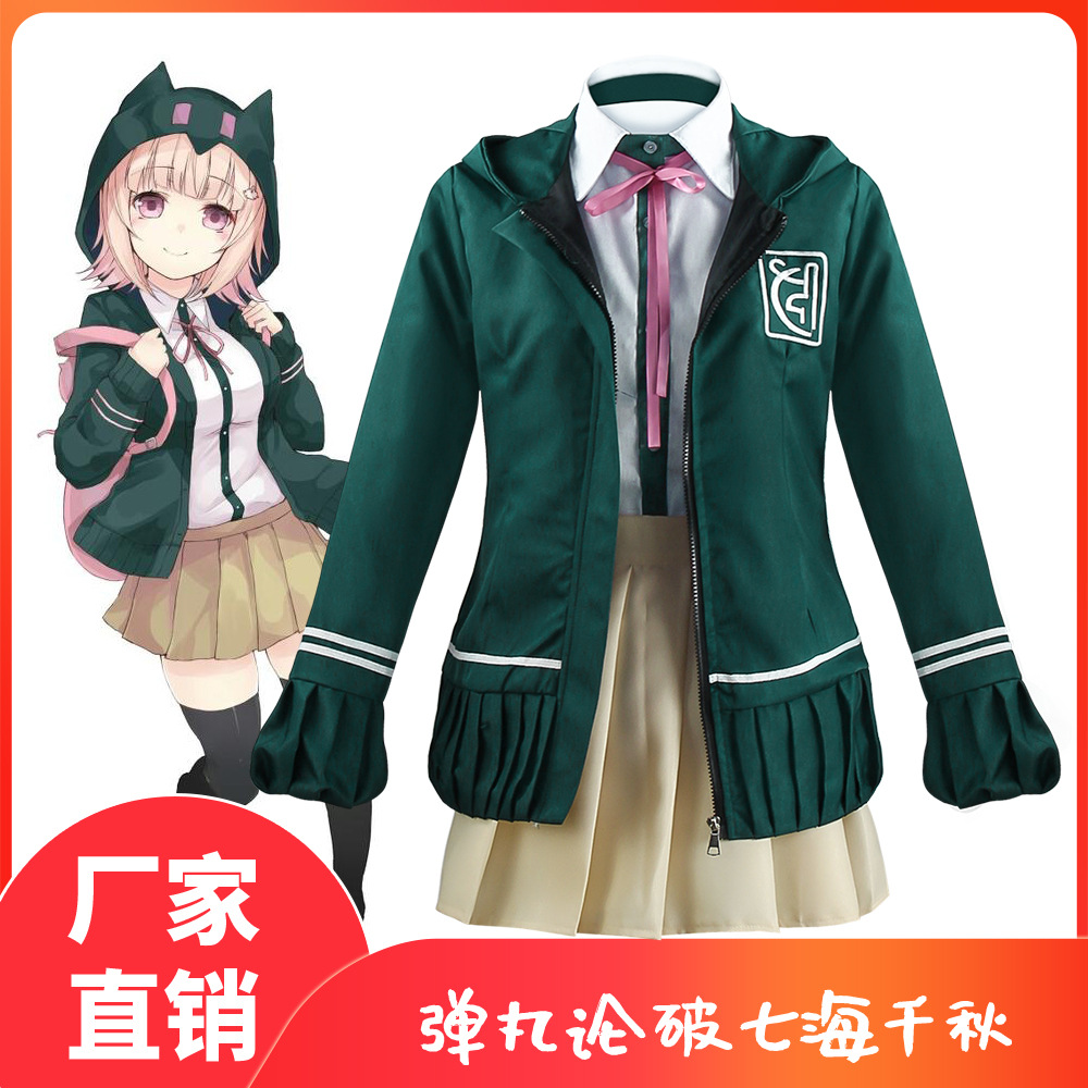 [Qihai Qianqiu] pakaian cos pakaian performa berkerudung hijau gelap seragam jk peluru teori rusak cosplay set lengkap