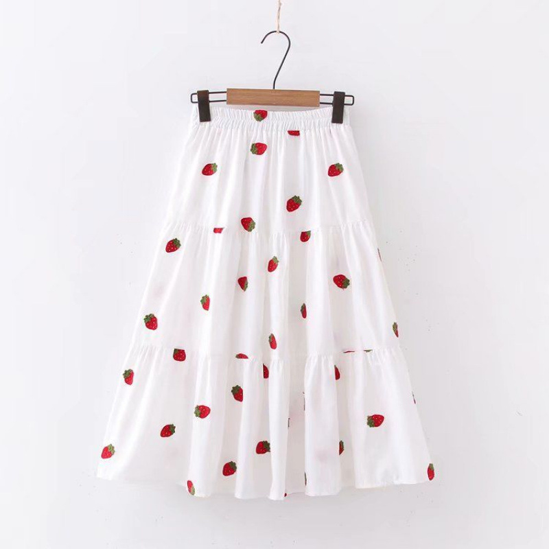 Rok Panjang Sedang Gaya Sekolahan Manis Gadis Remaja Rok Musim Panas Anak Perempuan Besar Rok Setengah Badan Buah Murid SMP dan SMA Model Baru
