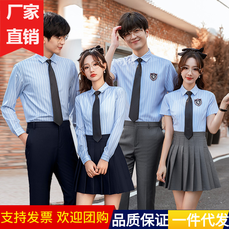 Kemeja lengan pendek profesional pria dan wanita, setelan seragam murid gaya kuliah, peralatan hotel wisuda gaya sama musim panas