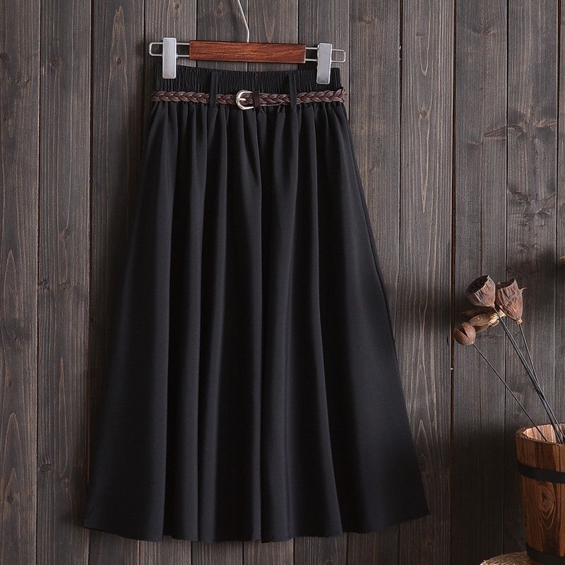 Rok Panjang Sedang Model Baru Musim Semi Rok Panjang Setengah Badan Murid Sekolah Sederhana dan Elegan Rok Setengah Badan Wanita Artistik Retro Mudah Dipadu Padan