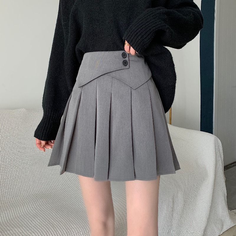 (Celana Keamanan Ritsleting 6CM) Rok Lipit Wanita Rok Seragam JK Rok Setengah Badan Netral Rok Musim Semi Musim Gugur