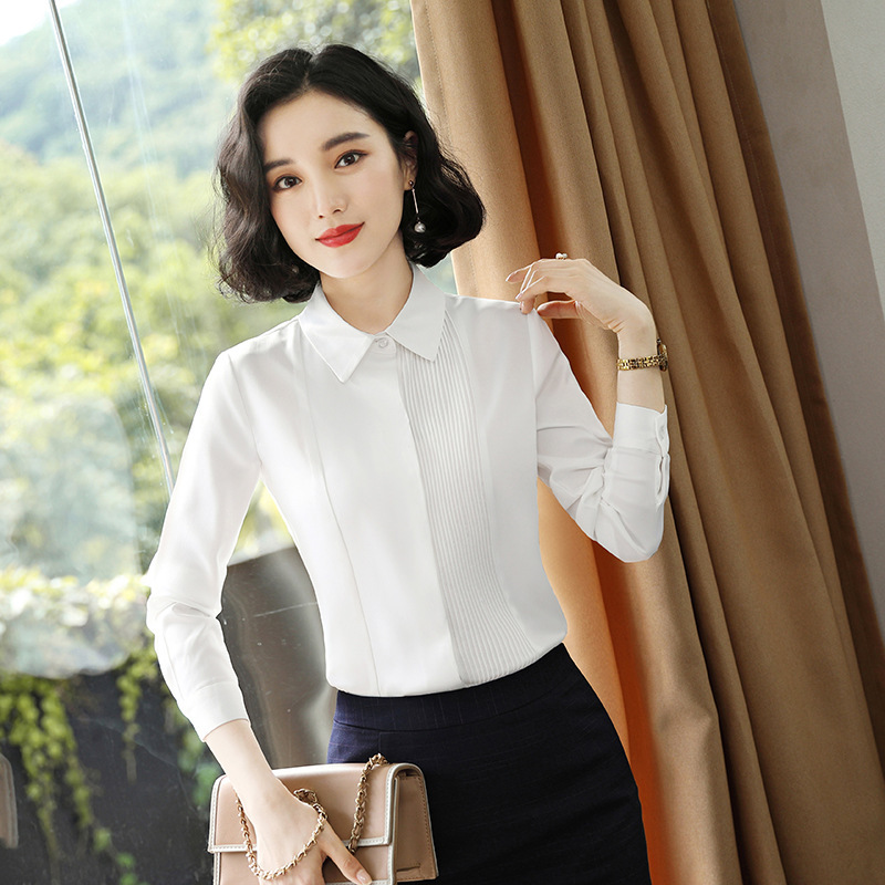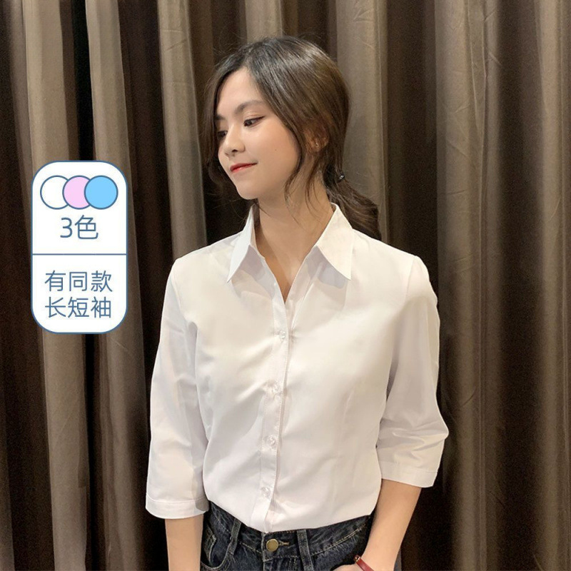 Kemeja putih wanita pakaian formal profesional kaus kerja wawancara siswa perguruan tinggi lengan panjang setelan atasan dalam kemeja lengan pendek