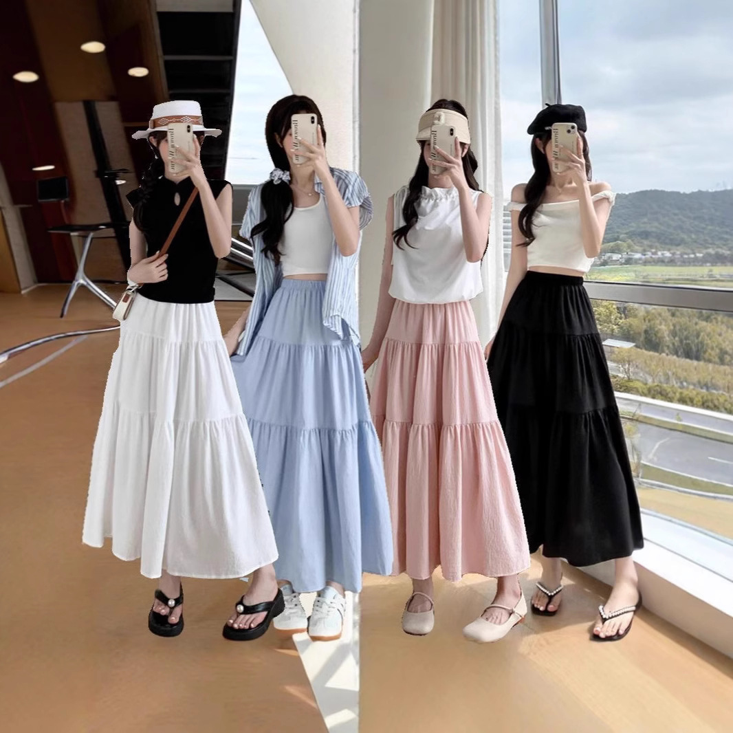 Rok Setengah Badan Warna Putih Versi Asli Rok Kue A-Line Pria Kecil Pinggang Tinggi Model Baru Model Tipis Musim Panas Rok Siswa Grosir