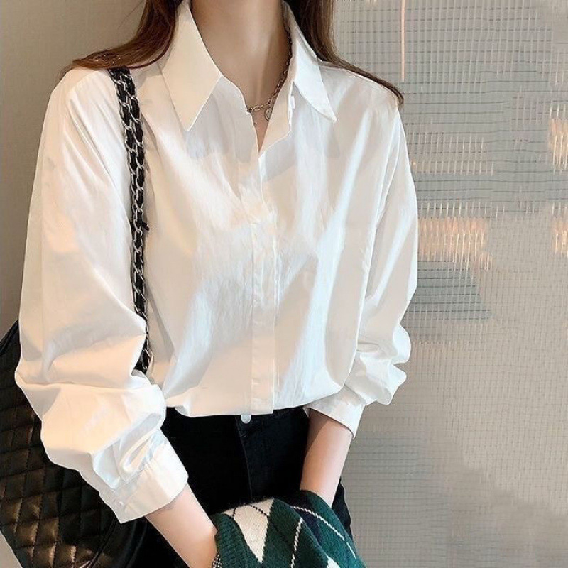 Atasan Niche JK Gaya Desain Gaya Korea Model Baru Musim Semi Musim Gugur Kemeja Lengan Panjang Gaya Kencang Dipakai Luar Kemeja Putih Dipakai Dalam Gaya Barat