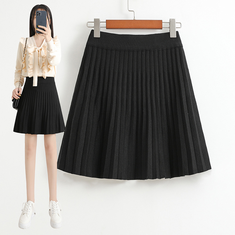 Rok lipit shot asli rok wanita rajut musim gugur dan musim dingin rok wol siswa pinggang tinggi ukuran besar musim semi dan musim gugur rok a-line