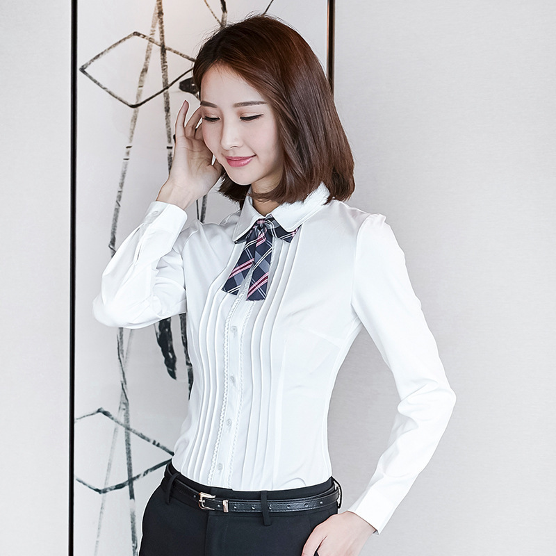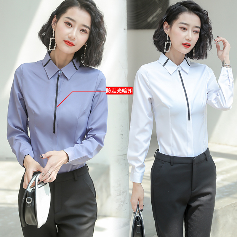 Kemeja kerja wawancara profesional wanita, kemeja Dalaman gaya Korea lengan panjang musim gugur 2019