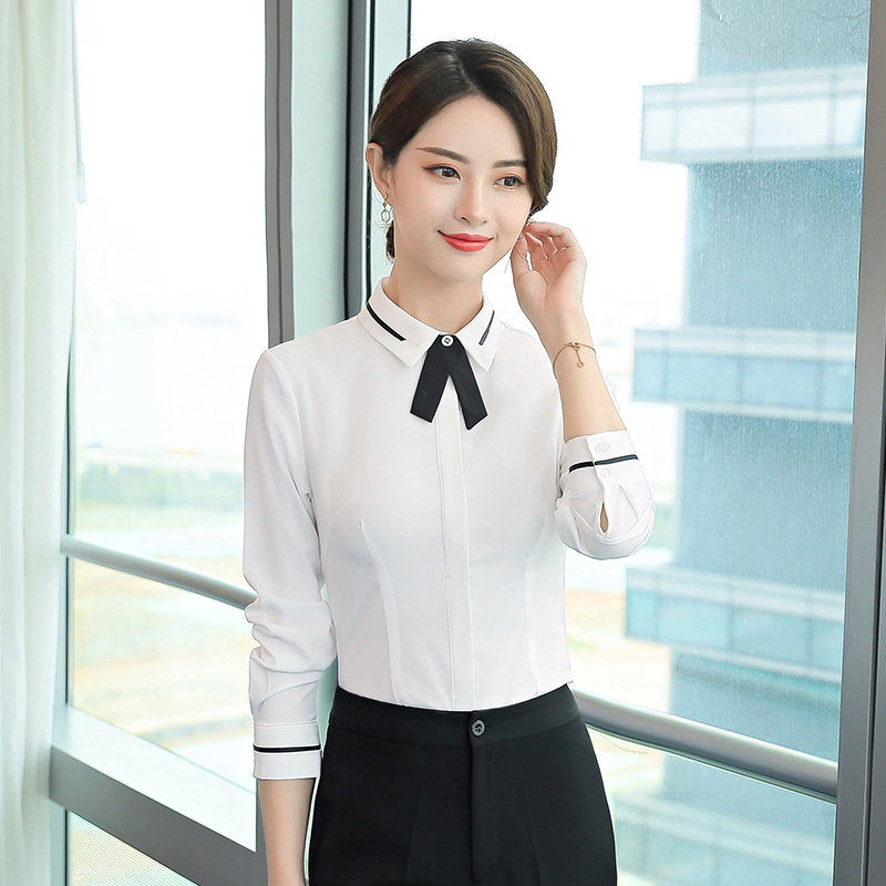 Kemeja putih lengan panjang musim gugur dan musim dingin pakaian bisnis wanita real estate hotel meja depan petugas wawancara mahasiswa pakaian overall
