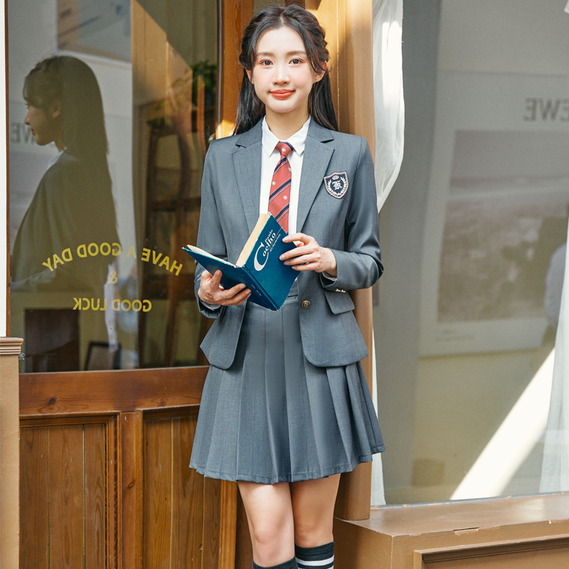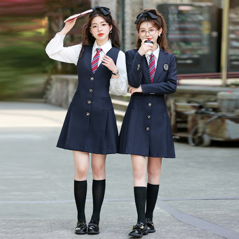 Setelan pakaian sekolah gaya kuliah wanita, pakaian kerja guru pakaian penampilan seragam JK musim semi dan musim gugur