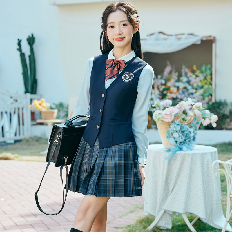 Setelan rok lipit gaya kuliah Jepang, setelan rok rompi seragam sekolah taman kanak-kanak, Rok lipit profesional, seragam jk