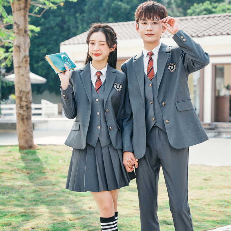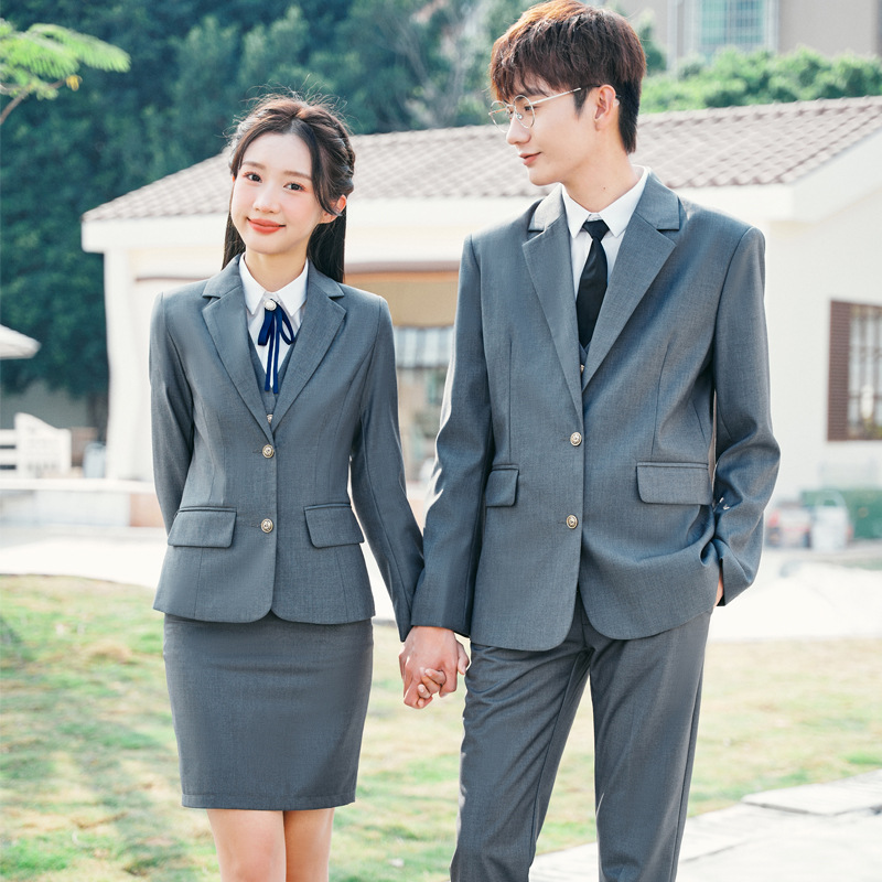 Setelan pakaian pria dan wanita, rompi setelan siswa gaya Korea, seragam JK, pakaian kerja taman kanak-kanak temperamen profesional musim semi dan musim gugur