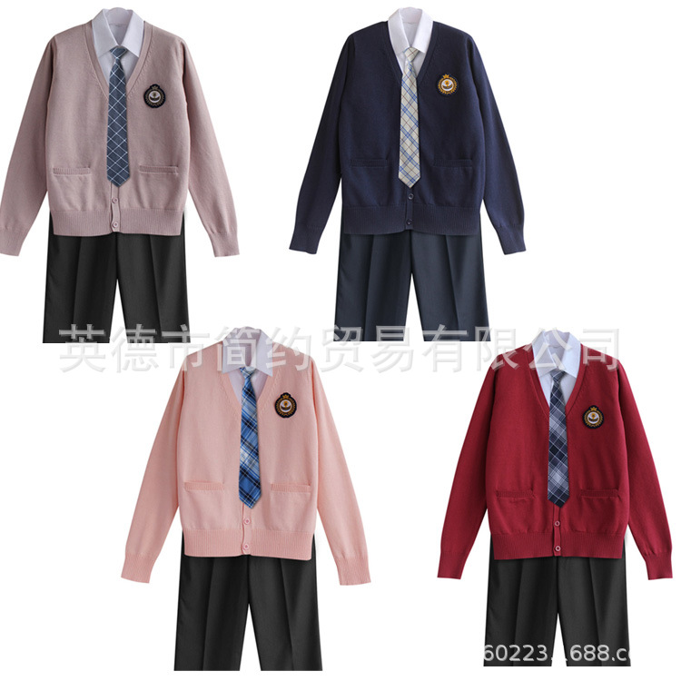 Setelan pakaian rajut seragam sekolah anak laki-laki DK seragam sekolah menengah pertama gaya universitas Inggris kelas musim gugur dan musim dingin gaya Jepang