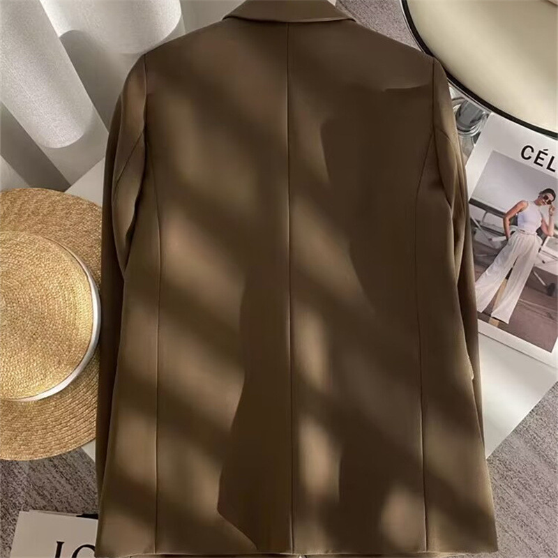 Jaket setelan kasual wanita, grosir jaket kasual coklat baru musim semi dan musim gugur wanita pelangsing serbaguna gaya Korea setelan kecil 2023
