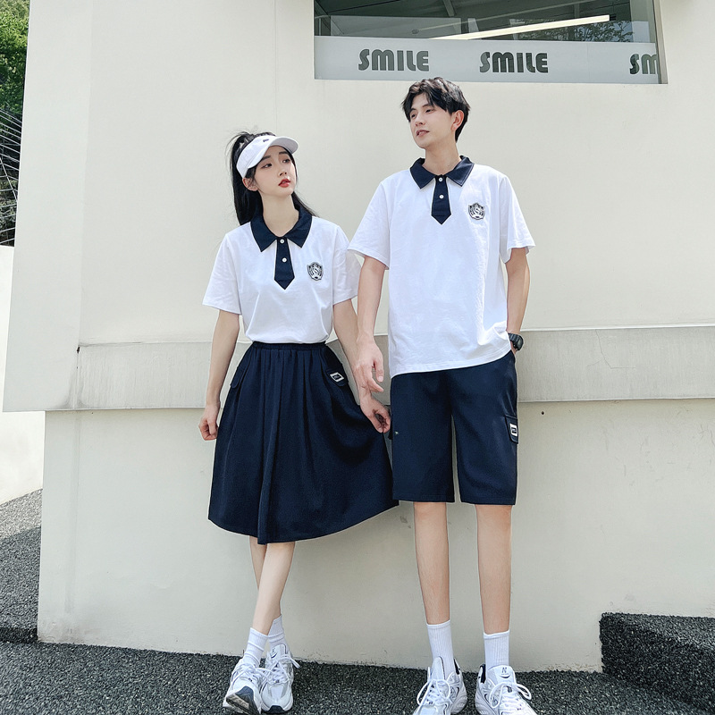 Setelan lengan pendek kelas menengah, pakaian musim panas kelas menengah, celana panjang sekolah teknis, seragam sekolah kejuruan, pakaian olahraga kasual pria dan wanita dua potong