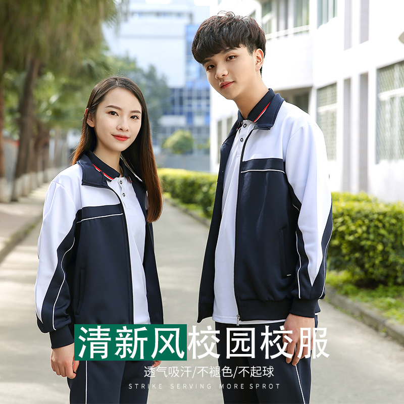 Seragam sekolah musim semi dan musim gugur untuk siswa sekolah menengah setelan jaket Sekolah Tinggi pakaian olahraga siswa sekolah menengah SMP gaya kuliah biru dan putih seragam kelas Musim wisuda