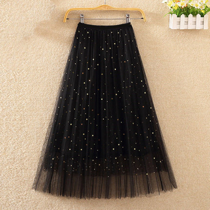 Pakaian Wanita Ukuran Besar Model Baru Musim Panas Rok Jaring Payet Bintang Rok Setengah Badan Instagram Mengikat Pinggang Besar Terlihat Langsing Versi Korea untuk Siswa Perempuan