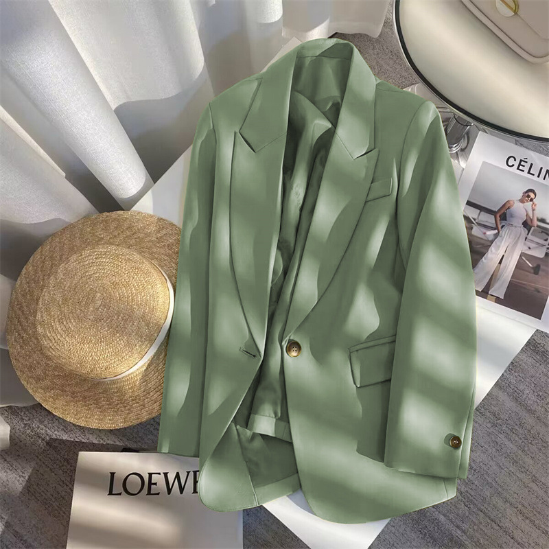 Jaket setelan kasual grosir baru musim semi dan musim gugur wanita setelan kecil gaya Korea pelajar pelangsing serbaguna hijau 2023