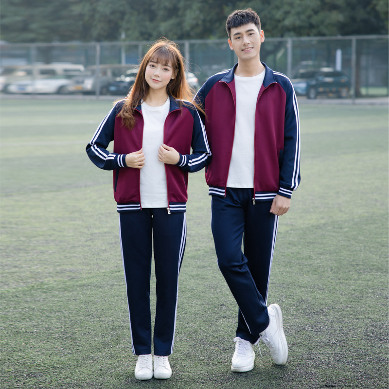 Pakaian seragam sekolah sutra Korea Selatan, pakaian kelas dua potong pakaian olahraga pakaian musim semi, jaket siswa sekolah menengah pertama pria dan wanita musim semi dan musim gugur