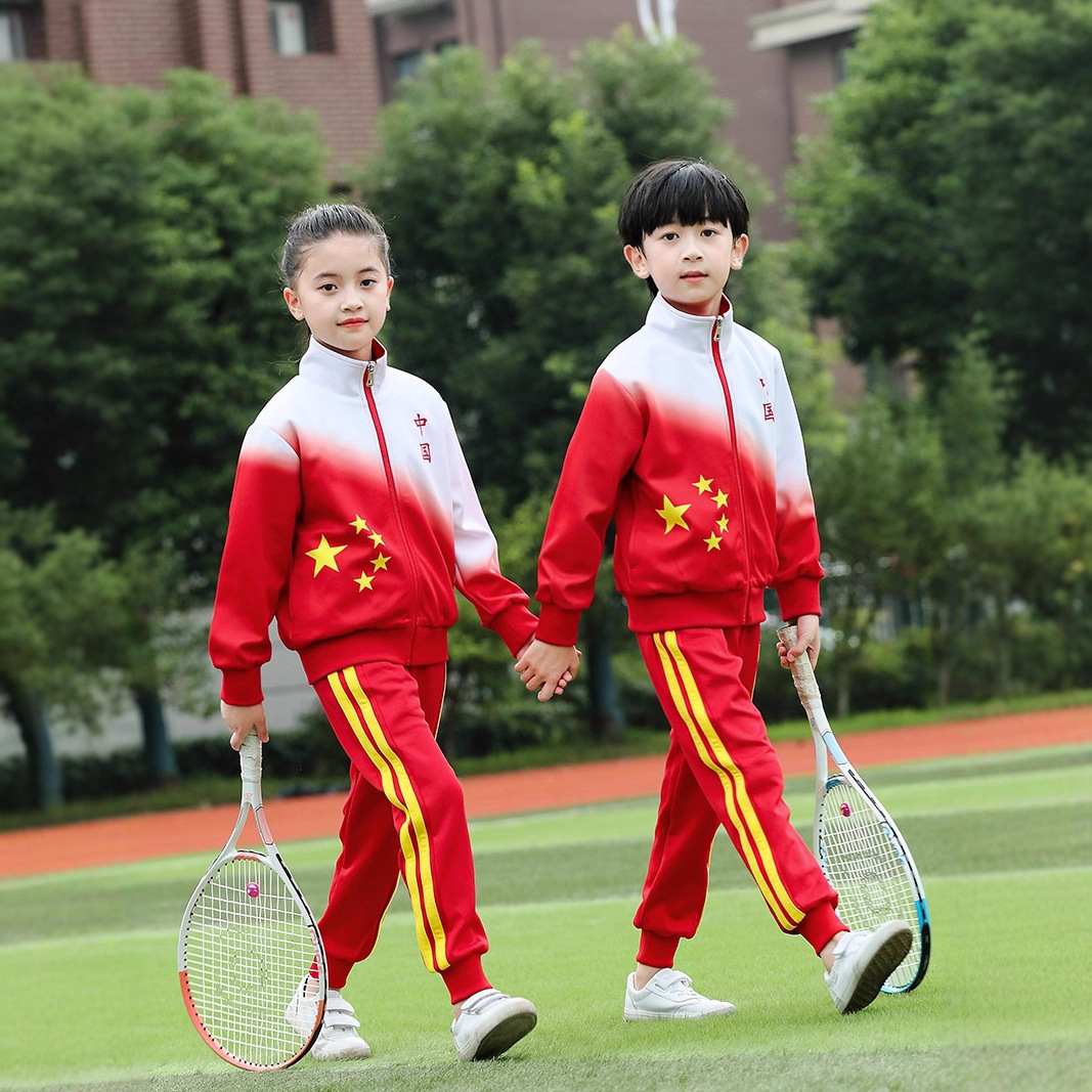 Seragam sekolah untuk siswa sekolah dasar, pakaian pertunjukan, pakaian kelas olahraga anak-anak musim semi dan musim gugur gaya Cina, pakaian taman kanak-kanak, tiga potong musim gugur