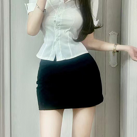 Kemeja Pelangsing Pinggang Lengan Pendek Seragam Jk Slim Fit Gaya Murni Kemeja Wanita Terlihat Dada Terlihat Warna Putih Tulang Ikan Elastis Gadis Pedas Gaya Kampus