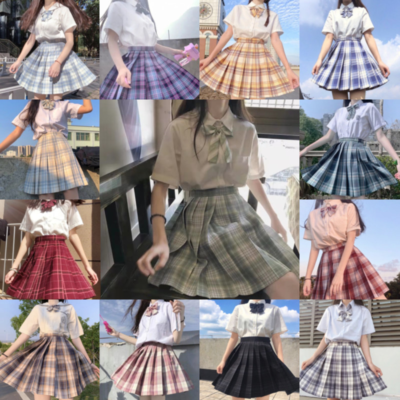 Setelan Pakaian Seragam JK Gaya Sekolah Jepang Gaya Kampus Atasan Musim Panas Wanita Baju Atasan Rok Lipit Dua Set Gaun