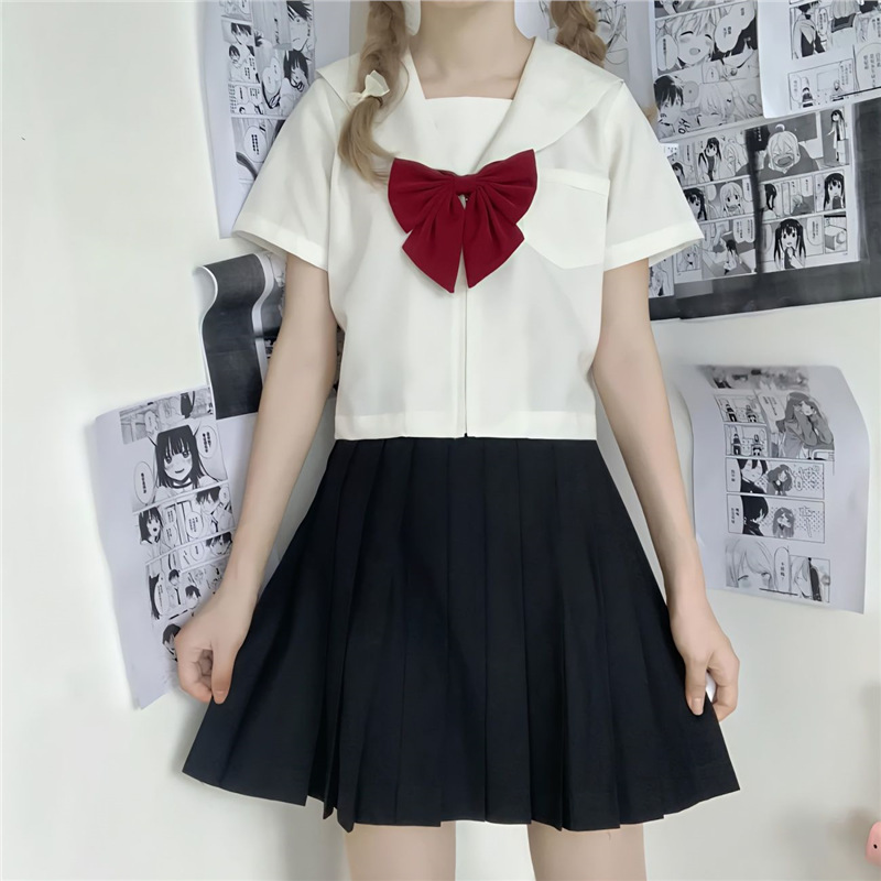 Setelan pelaut setelan jas tengah lengan panjang asli musim semi dan musim panas rok seragam jk sihir gelap selebriti Online