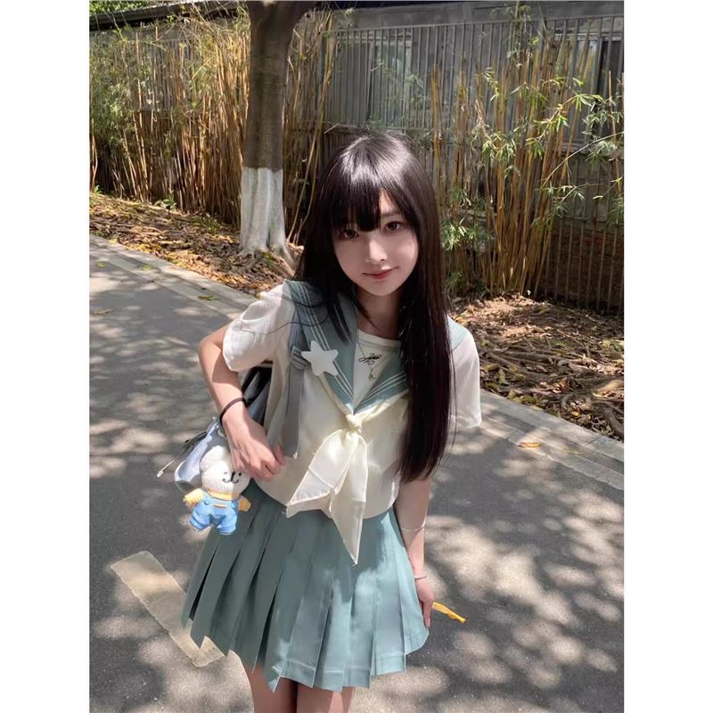 Pakaian pelaut bulu teh jk asli musim panas perlengkapan sekolah dasar jelek JK setelan seragam musim panas gaya kuliah