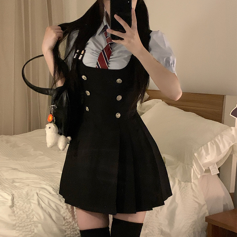 Setelan Seragam Kemeja Warna Putih Setelan Seragam JK Setelan Dua Potong Desain Musim Panas Gadis Pedas Model Baru Terlihat Langsing