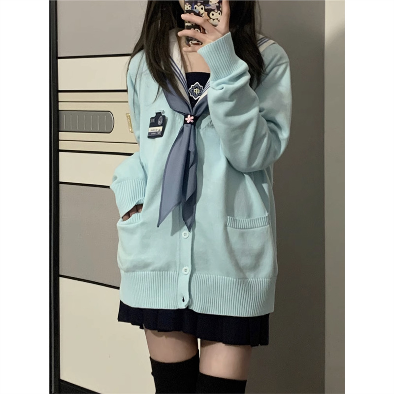 Sweater Seragam JK Asli Gaya Jepang Musim Gugur Musim Dingin Kardigan Rajutan Gaya Sekolah Gaya Sekolah Longgar Lengan Panjang Jaket Mudah Dipadu Padan Wanita