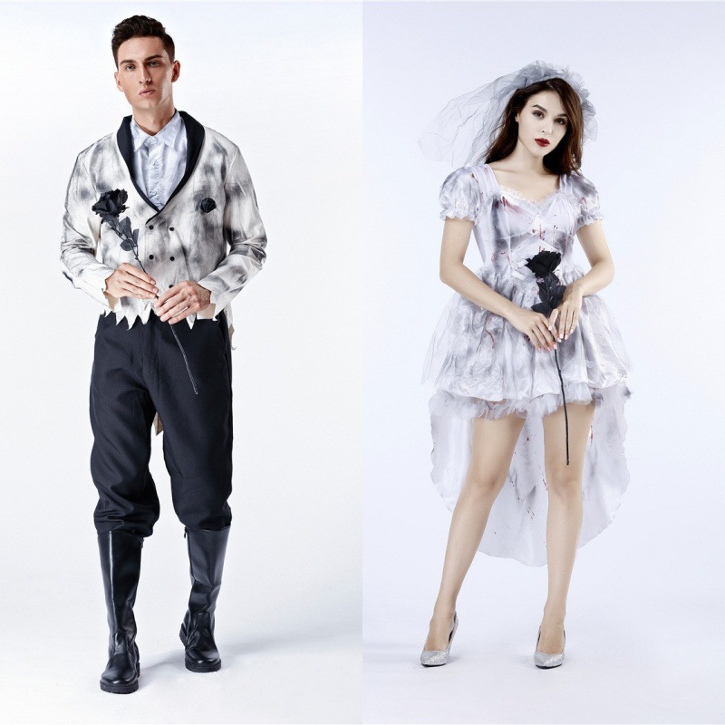 Gaun cosplay putih dewasa, kostum cosplay hantu pengantin pria