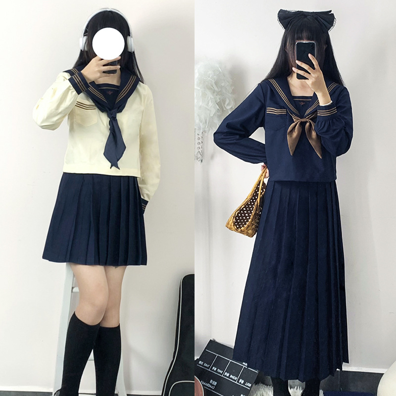 Seragam Ortodoks Jepang jk putih tiga-buku setelan dasar seragam sekolah gaya Universitas setelan pelaut wanita rok berlipat musim panas