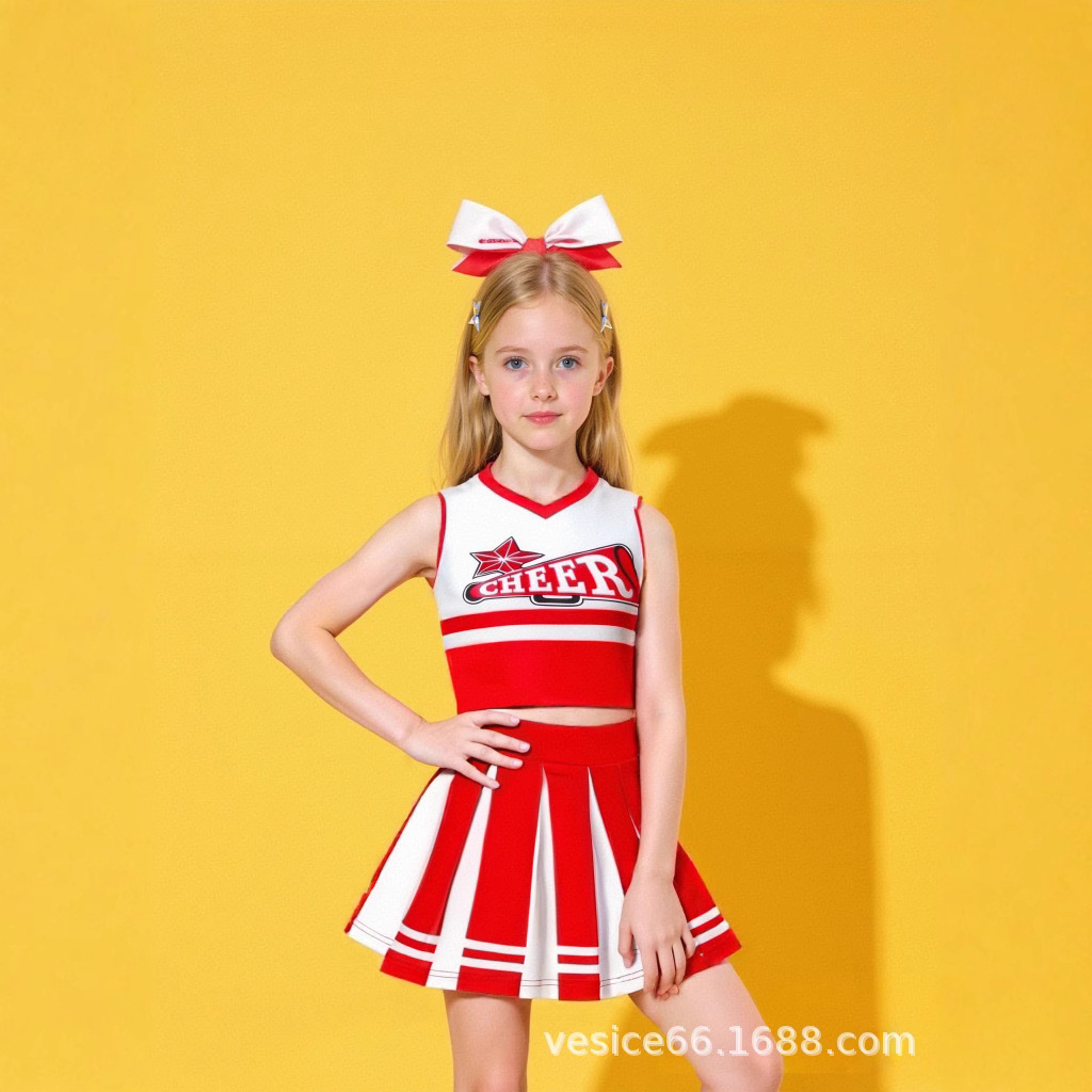 Pakaian Pertunjukan Cheerleader CHEER Anak-anak Musim Semi dan Musim Panas Gaun Cheerleader Permainan Olahraga Siswa Pakaian Pertunjukan Cheerleader