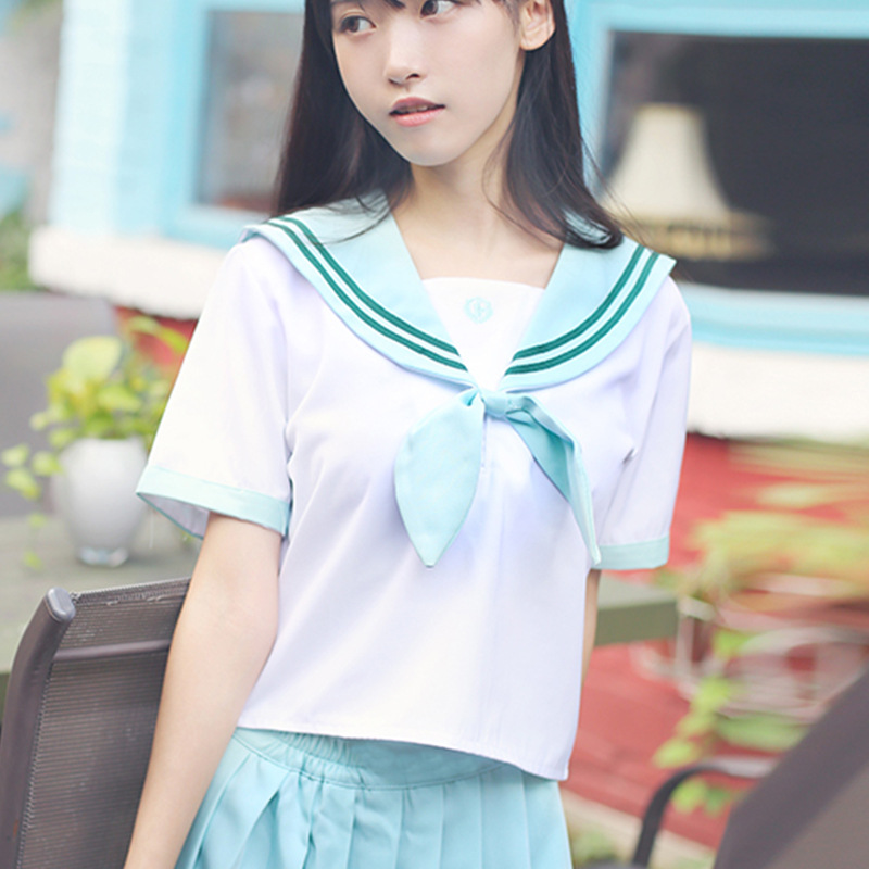Seragam tiga ortodoks JK dasar biru laut gaya Universitas biru dongker baju musim panas lengan pendek setelan pelaut Tengah