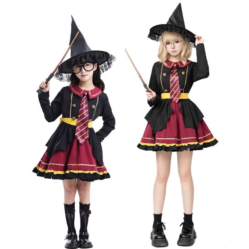 Gaun Penyihir Cosplay Harry Potter Halloween Pakaian Pertunjukan Orangtua-Anak Seragam Akademi