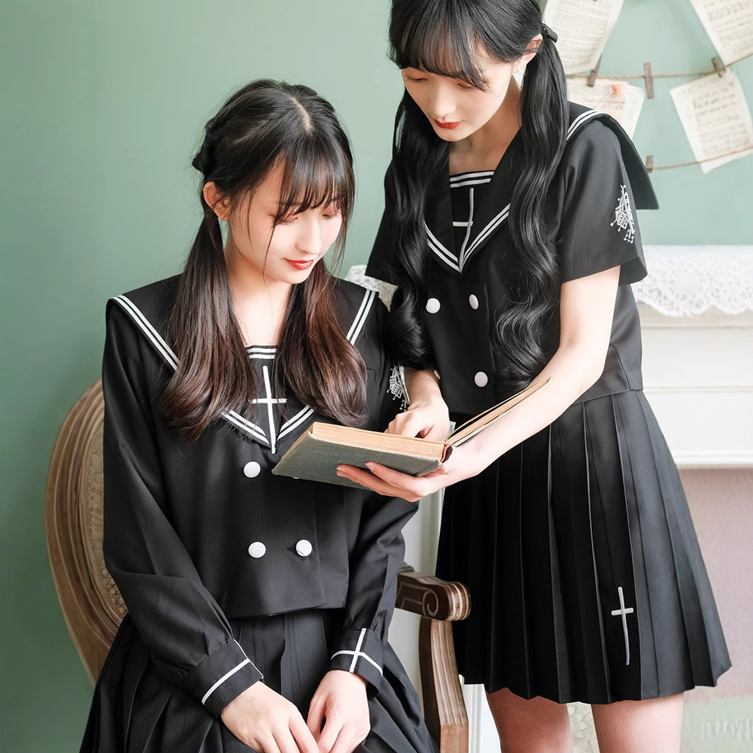 [Kota siluet] seragam jk asli Jepang setelan pelaut gadis buruk bordir set lengkap seragam sekolah pelajar