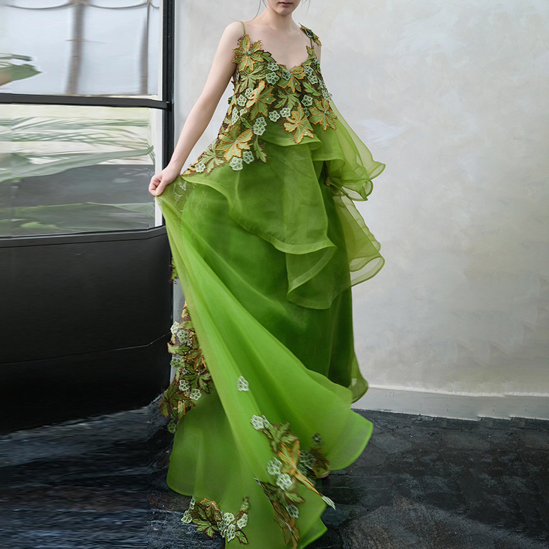 Gaun Pesta Malam Hijau Gaya Mori Gaun Gaun Pagi Musim Wisuda Siswa