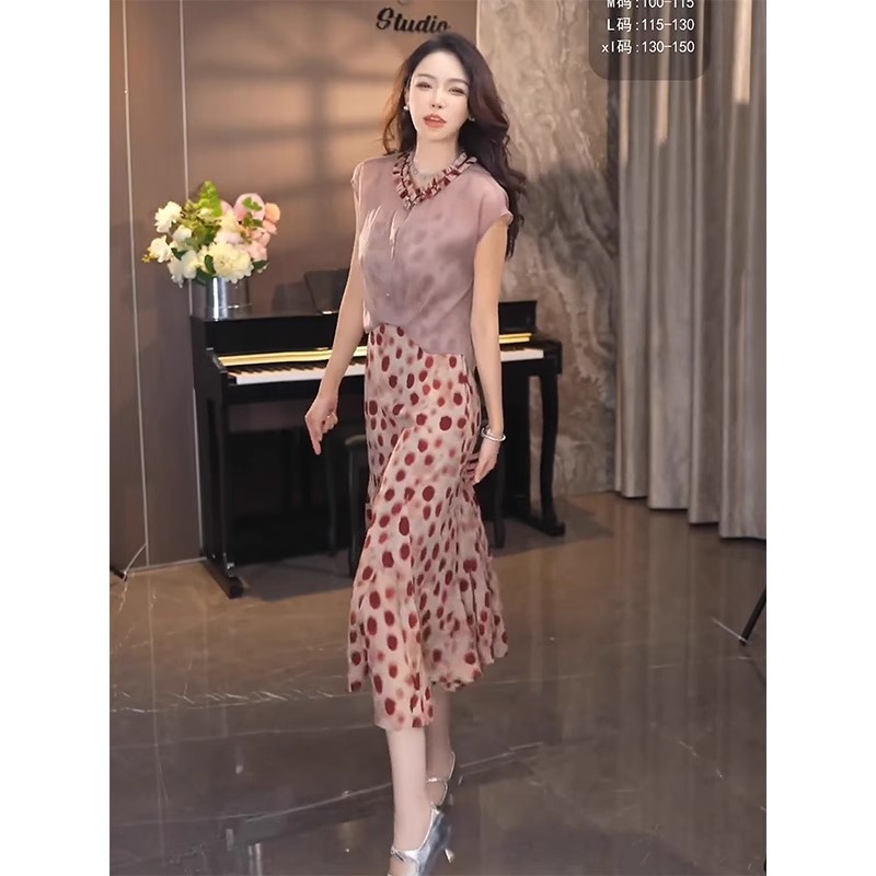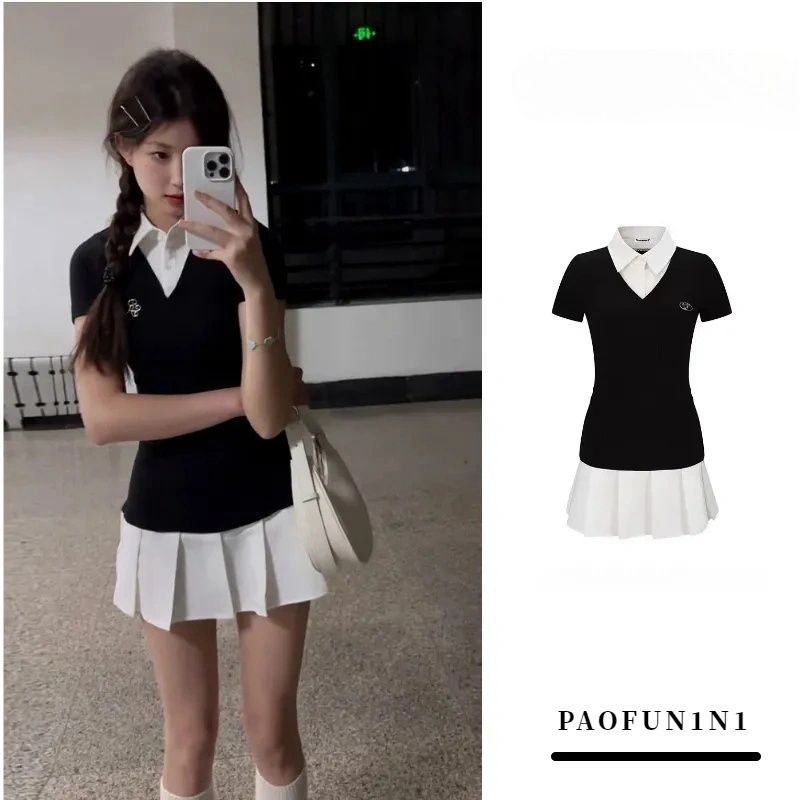 Gaun penutup perut rasa desain yang cocok warna gaya Barat pelangsing serbaguna musim panas kerah berdiri siswa baru ukuran plus