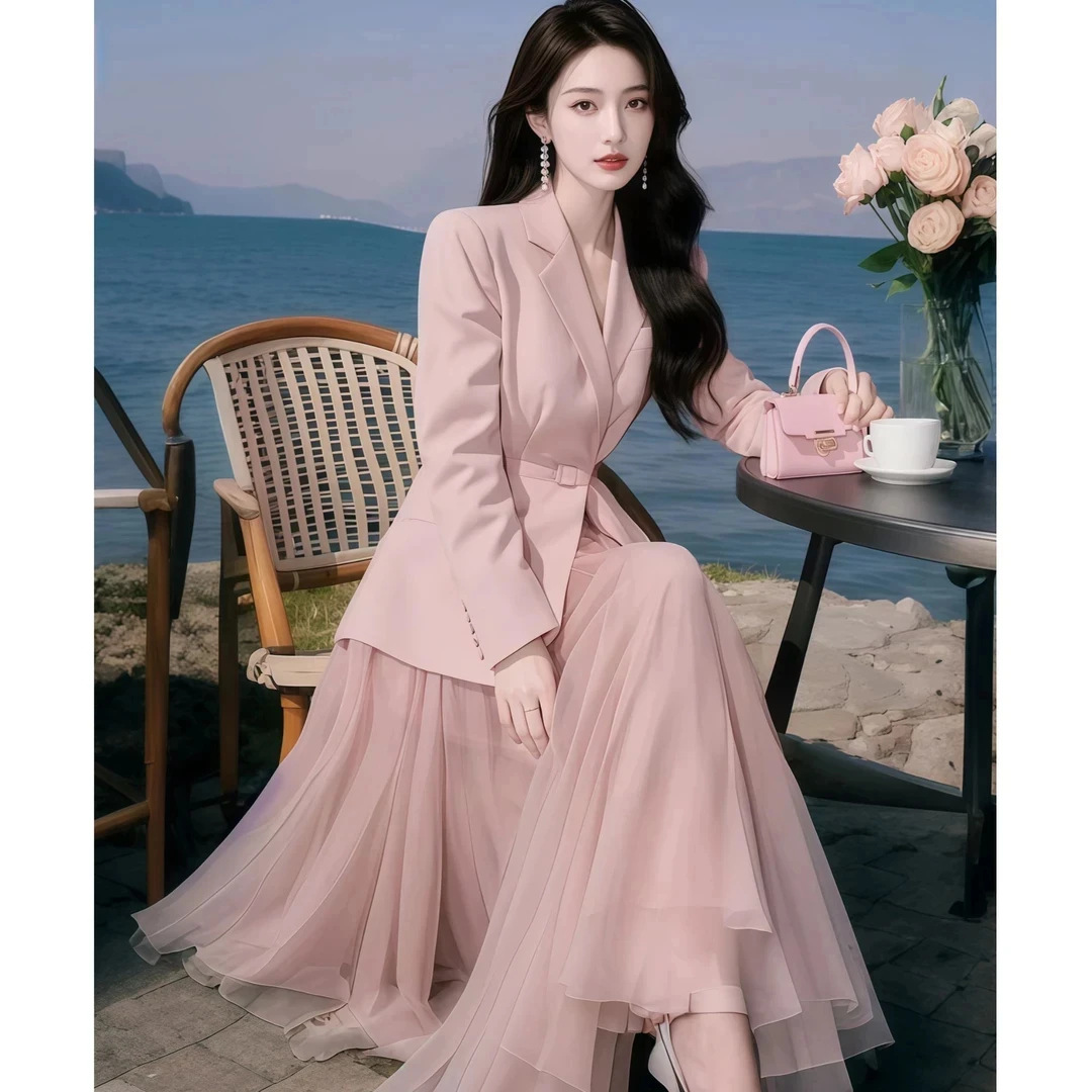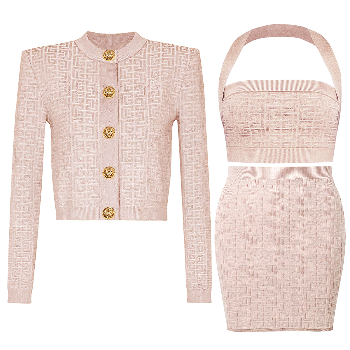 现货春夏新款女式时尚网红针织外套上衣+半身短裙+背心三件套套装