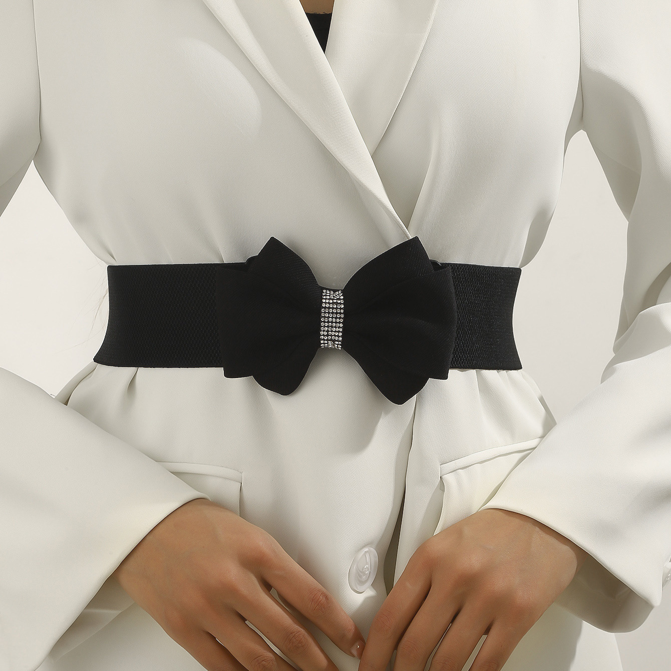 蝴蝶结腰带镶钻甜美连衣裙领结装饰皮带百搭松紧弹力腰封女韩版