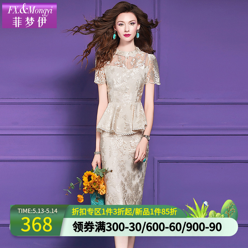 Setelan Modis Berkualitas Tinggi yang Dimasak Ringan Feminin Rok Membungkus Pinggul Kemeja Elegan Sosialita Tepi Daun Teratai Musim Panas Wanita Setelan Dua Potong